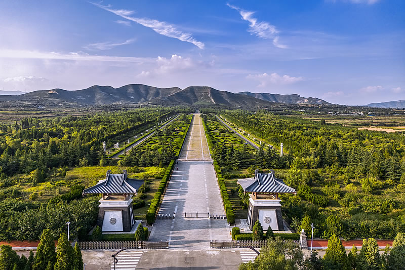 • 地理位置:陜西省渭南市蒲城縣西北豐山,唐睿宗李旦陵墓,全國重點文物保護單位、國家AAAA級景區,以“石雕藝術寶庫”著稱,面積852萬平方米,神道寬110米、長625米,石刻群包括華表、翼馬、鴕鳥、翁仲等,氣勢恢宏。