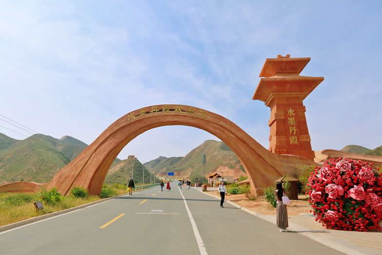 蘭州水墨丹霞旅游景區位于甘肅省蘭州市永登縣樹屏鎮杏花村,景區橫跨蘭州市的永登縣、西固區、皋蘭縣,主體位于永登縣的苦水鎮、樹屏鎮,景區規劃總面積400平方千米,一期核心游覽面積20平方千米,是中國已發現面積最大的同類型地貌景觀。蘭州水墨丹霞地貌,發育于白堊紀至第三紀時期,是喜馬拉雅造山運動中發育形成的紅色巖系隨著地殼的抬升,保留下來的紅色砂巖,經長期風化剝離和流水侵蝕形成的地質奇觀。2017年7月,蘭州水墨丹霞旅游景區取得市政府總體規劃批復,于2018年7月完成立項,2019年4月啟動建設,2021年10月1日正式開園。蘭州水墨丹霞旅游景區主要以紅山灣地貌為主,兼有丹霞崖壁、孤峰、幽谷等奇特景觀,主要景觀包括絲路霞光、九色丹青、丹頂攬勝等7個觀景平臺和絲路古途景觀大門、沙韻駝鈴景觀大道及全長3500米的丹霞棧道。蘭州水墨丹霞旅游景區因分布面積最大、地貌種類最全、形成時間最古老、發現時間最晚、保存最完好、離城市最近、原住居民最少、文化積淀最深、名人經過最多而素有“九最”之稱。