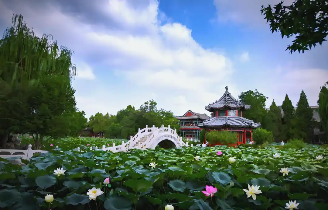 - 荷花景觀:夏季7-8月滿池荷花盛放,設3萬余㎡觀荷區,展出“霓裳”“鄴城毓秀”等320余種荷花及60余種睡蓮;冬季冰瀑景觀壯觀。