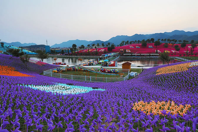 - 歐式風情街:13棟馬卡龍色法式建筑群,含香草主題餐廳、紫丘咖啡館、手工坊,尖頂教堂、荷蘭風車群超適合打卡。