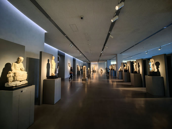 - 核心特色:融合佛教造像、玉器、陶俑、青花瓷等多品類文物,以“料、工、形、紋”古器物學研究為脈絡,建筑本身即藝術——玻璃帷幕在夜間化身深邃藍盒,旋梯貫穿全館,光影隨樓層遞增由暗轉明,象征對光明與希望的追逐。