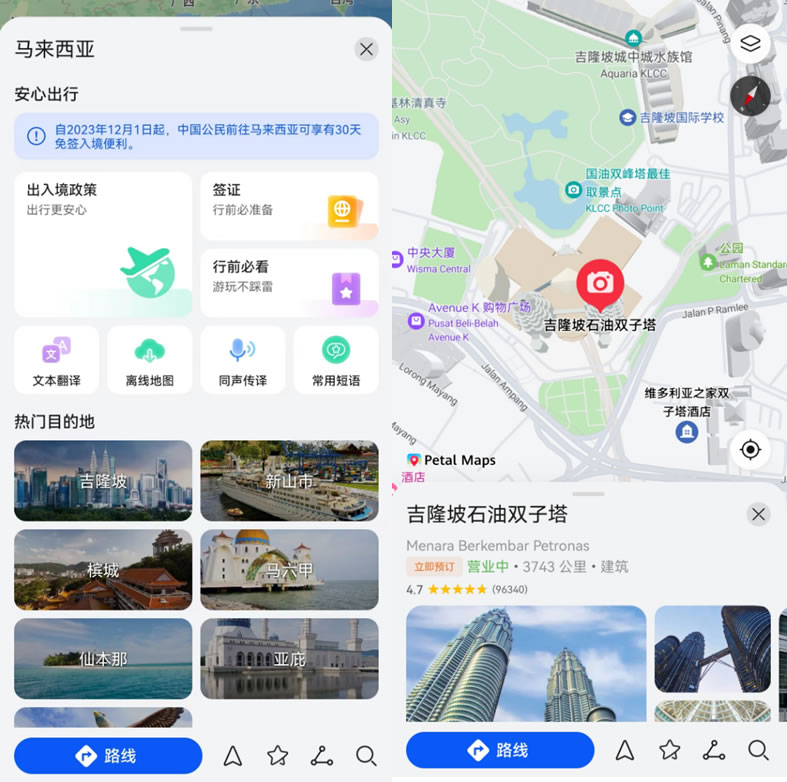 不用怕!Petal Maps是更適合中國寶寶的導航。它不僅原生默認支持中文界面和語言導航,還能提供覆蓋全球 160+ 國家和地區的詳細地圖數據,豐富的地理位置信息和精準的路線規劃,能帶你輕松抵達目的地,發現隱藏的景點和美食。