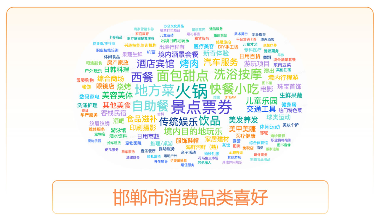 近期,邯鄲在文旅迸發出無限活力,暑期、春節出現了兩次明顯的交易高峰,主要表現在游玩、美食、休閑娛樂賽道,在TOP100商家中這些賽道占據了63.54%的交易份額,強勁的爆發系數讓我們看到了邯鄲文旅的巨大潛力。