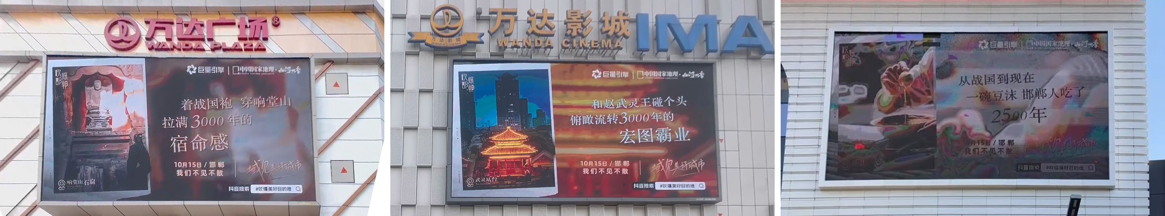 不僅如此,巨量引擎更聯合中國國家地理•山河四季,在各地萬達大屏上演了一場邯鄲城市大片攝影展,讓邯鄲的寶藏美景通過鏡頭、照片走出去。