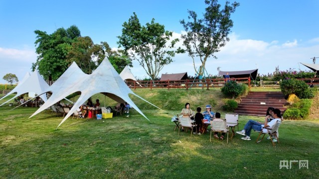 多元體驗讓假日消費延伸出更多維度。秋日艷陽下,孩子們在紅高粱地中盡情高歌;滿天星斗下,非遺傳承人揮舞的鐵花點亮夜空;星空影院前,游人圍坐煮茶觀影;露營基地內,燒烤的香氣飄滿整個田野……這座融合文化體驗與田園休閑的園區,正成為人們的假日消費的新選擇。園區負責人陳霞介紹,園區內專門設計了甲骨文識字、傳統文化研學、高粱采收等親子項目,讓游客在體驗中消費,在消費中感受文化。