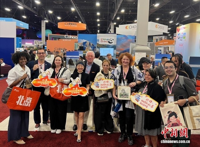 當地時間10月8日,2025年美國會議獎勵旅游展(IMEX America)繼續在拉斯維加斯舉行。這是全球會議及獎勵旅游領域最具影響力的展會之一。中國展臺舉辦“中華一刻”——中國非物質文化遺產體驗等豐富多彩的活動,吸引眾多與會者感受中華文化魅力。圖為國際會獎旅游買家等參加中國展臺活動時合影。