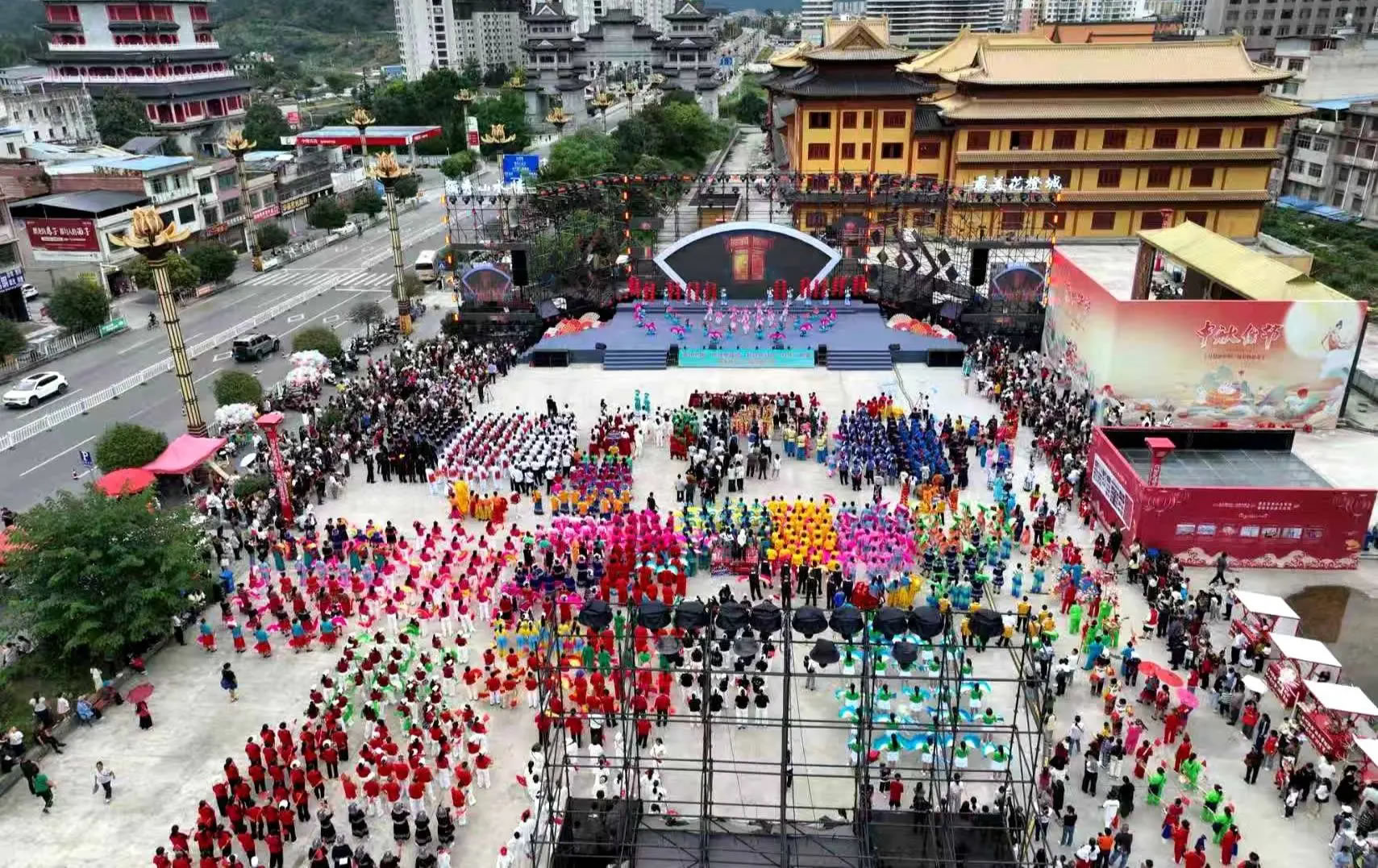 假期間,貴州黔南“秋飲穿越酒”獨山花燈暨“村戲”展演活動在獨山主城區舉行,活動以“巡游+展演+市集”為主線,匯集重慶、廣西、云南等多地表演者,組織27支巡游隊伍開展巡演,沿途呈現舞獅、“踩燈”及現代花燈歌舞,吸引群眾駐足互動。
