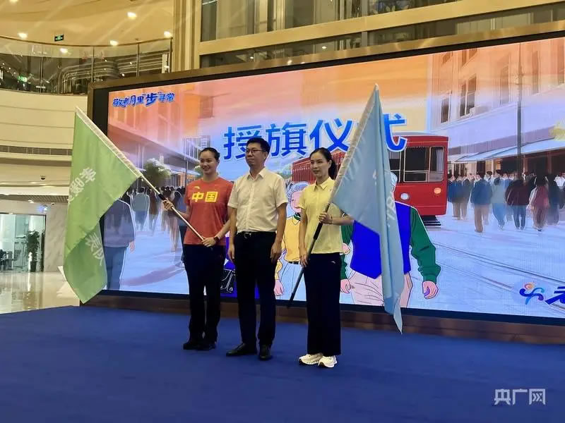 奧運冠軍授旗領隊(央廣網記者 郭振丹 攝)