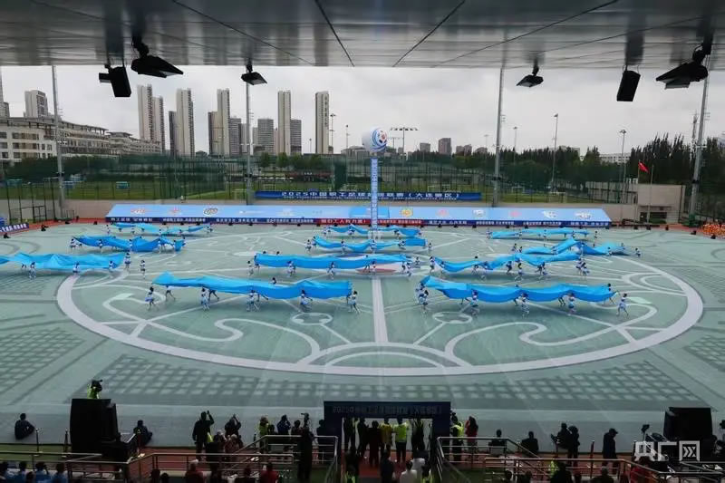 揭幕戰(zhàn)開始前,大連職工傾情演繹的主題表演《大海啊故鄉(xiāng)》,成為表演節(jié)目中的一抹亮色,舞臺上藍(lán)色海浪涌動,職工青春的活力與濱城的海韻完美交融,將開放包容的城市氣質(zhì)化作澎湃的視覺交響,藝術(shù)化呈現(xiàn)了大連職工足球發(fā)展的歷史。健排舞《我愿全速奔向你》,原創(chuàng)舞蹈《大連雄風(fēng)》,歌舞表演《奔跑》等節(jié)目充分展示了大連城市發(fā)展活力和開放文明新形象,展現(xiàn)了大連職工昂揚(yáng)向上、積極進(jìn)取的精神風(fēng)貌。伴隨著激昂的樂曲,來自大連市實(shí)驗(yàn)小學(xué)和沙河口區(qū)東北路小學(xué)兩所國內(nèi)知名足球特色學(xué)校的孩子們,帶來了精彩的顛球表演,孩子們個個精神抖擻、技藝嫻熟,把現(xiàn)場的氛圍推向高潮。