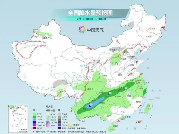 后天,新疆沿天山地區、青海東南部、川西高原北部等地部分地區有小雪或雨夾雪。陜西中部、河南西部、湖北南部、湖南西北部、四川南部、云南東北部、福建東南部、廣東東南部、臺灣島等地部分地區有中到大雨。