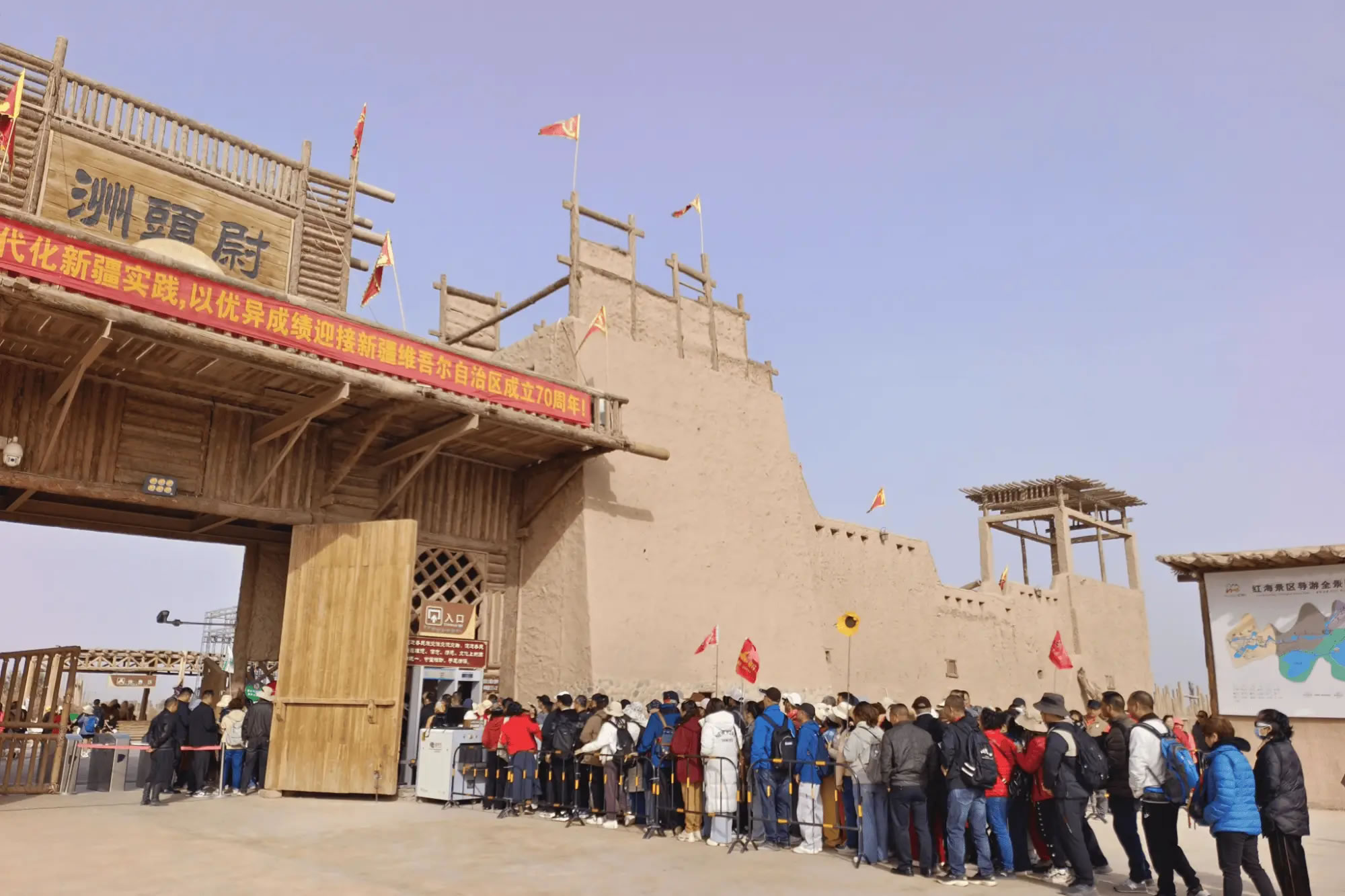 作為第六屆新疆喀什絲路文化胡楊節(jié)的分會(huì)場(chǎng),巴楚縣依托紅海景區(qū),精心策劃了一系列特色活動(dòng),為游客們帶來(lái)多元的文化體驗(yàn)。在尉頭洲城門,開幕式的場(chǎng)地已經(jīng)完成設(shè)備調(diào)試,周邊的特色美食展位也已搭建完畢。在“絲路第一馕坑”旁,工作人員正忙碌地籌備著各種美食,屆時(shí),烤全駝、烤牦牛以及烤羊等美食將在此亮相,為游客們帶來(lái)一場(chǎng)味覺與視覺的雙重盛宴。