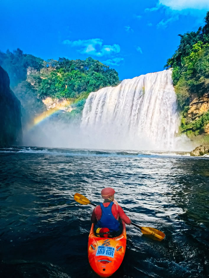 作為貴州黃果樹瀑布歷史上首次開放其核心激流區域用于國際體育賽事,賽段的水流速度、渦旋強度、河道形態完全由大自然鬼斧神工造就,是任何人工賽道都無法模擬的極限環境,不僅為全球頂尖運動員提供了獨一無二的挑戰舞臺,更是開創了國內首條穿越活體大瀑布的激流回旋賽道。