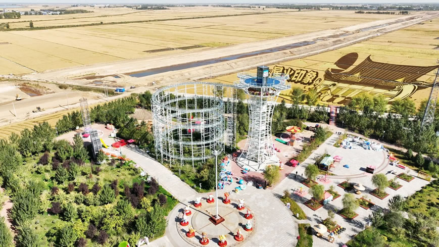 這是農文旅深度融合發展的創新實踐。作為新中國第一個集體農莊的誕生地,星火村曾創下多個“第一”,第一個拖拉機站、第一個農民水稻科研小組、第一個寫入小學課本的新中國集體農莊.....如今,這份紅色基因與5000平方米生態稻田、朝鮮族民俗風情深度交融,催生出獨特的文旅IP。登上40余米高的星火塔,可俯瞰稻海翻波;體驗430米玻璃水滑梯,能感受速度與清涼的碰撞;在星火時光供銷社追憶往昔,于星火工坊體驗打糕制作,讓游客在一靜一動間觸摸歷史溫度與民俗魅力。自景區開園開始,首屆非遺美食文化節、寒地小龍蝦節、稻種嘉年華等特色創意活動相繼舉辦,共計吸引客流108萬余人,帶動收入8600萬元,印證了“以文塑旅、以旅興農”的鮮活成效。