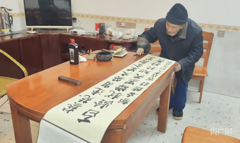 “百歲老人”何茂基揮毫潑墨(央廣網發 郭名德 攝)