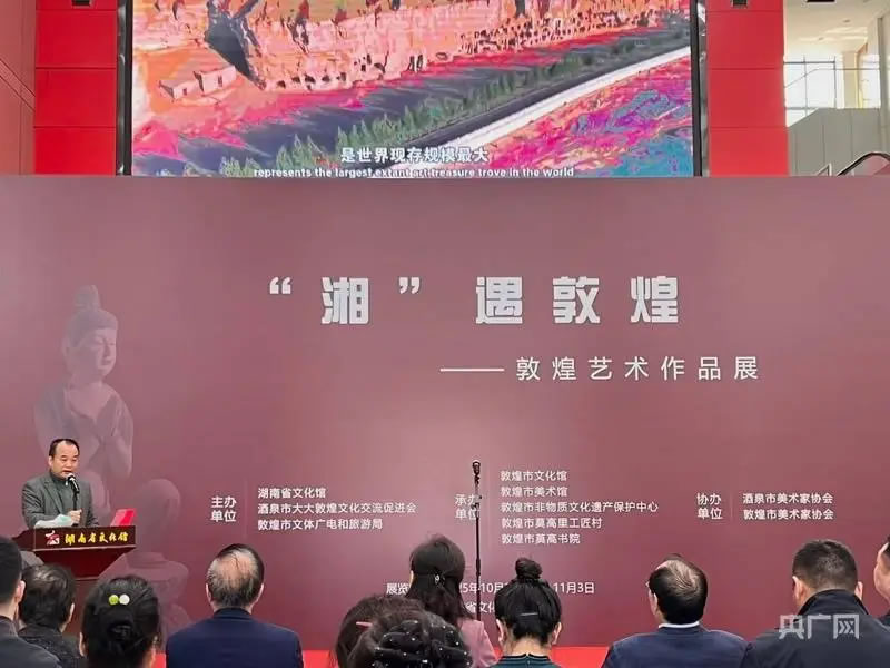 此次展覽,不僅是兩地踐行文化自信、推動文化交流的重要舉措,更在于通過展覽,讓敦煌文化為瀟湘大地增添一抹濃郁的藝術色彩,也讓荊湘文化為戈壁綠洲帶來靈秀的人文氣息,真正意義上實現文化資源的共享互鑒,為兩地文化發展注入新動能。
