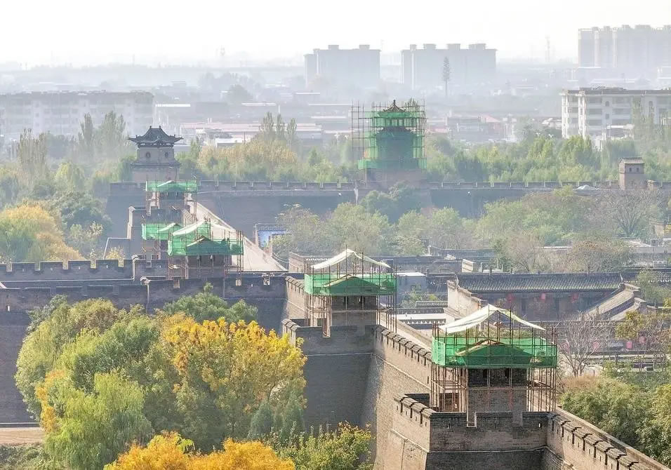 山西平遙古城東城墻展開修繕作業