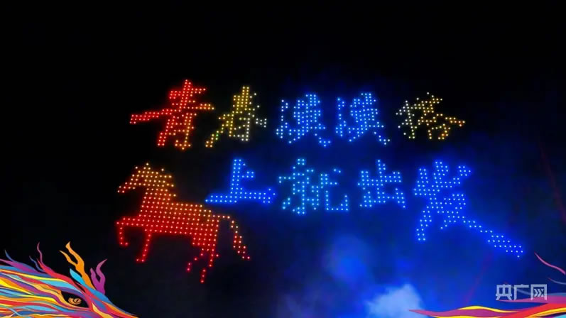 千架無人機組成的光影圖案與星河交相輝映(央廣網發 中衛市委宣傳部供圖)