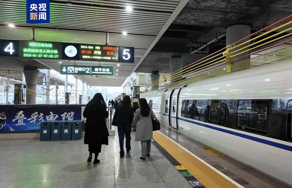 記者從國鐵南寧局獲悉,1月27日7時58分,首趟南寧東至延安的動車組列車G3352次駛出站臺,標志著“綠城”南寧與“革命圣地”延安實現高鐵直通,填補了兩地無直達高鐵的空白。