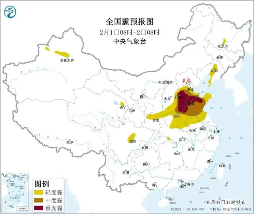 此外,預(yù)計1日至4日,華北南部、黃淮中西部、江漢等地的部分地區(qū)有輕至中度霾天氣,局地有重度霾。2月5日起,受冷空氣影響,上述地區(qū)霾天氣自北向南逐漸減弱消散。公眾外出請做好個人健康防護(hù),易感人群建議減少戶外活動。
