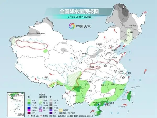中國天氣網訊 今天(3月2日),中東部降水將有所減少減弱,但江南、華南等地仍有較大范圍降雨,強降雨分布較零散。受冷空氣和陰雨雪共同影響,本周北方多地氣溫波動明顯,華北一帶體感濕冷,公眾外出需添衣保暖。
