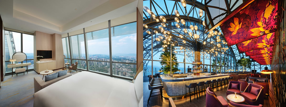 上海佘山世茂洲際酒店,地平線(xiàn)下88米的“建筑奇跡”,由世界知名設(shè)計(jì)師Martin Jochman團(tuán)隊(duì)打造,將自然巖壁與現(xiàn)代設(shè)計(jì)完美融合。酒店330間客房與套房各具特色,包括巖壁景觀房與水下套房,帶來(lái)沉浸式住宿體驗(yàn)。餐飲涵蓋現(xiàn)代感十足的“源咖啡”全日餐廳、綺麗獨(dú)特的彩豐樓中餐廳以及四周環(huán)繞水族館的“漁火”特色餐廳;酒吧與大堂吧將深坑景觀與自然美景相映成趣,讓賓客在自然奇境中享受別具一格的入住體驗(yàn)。
