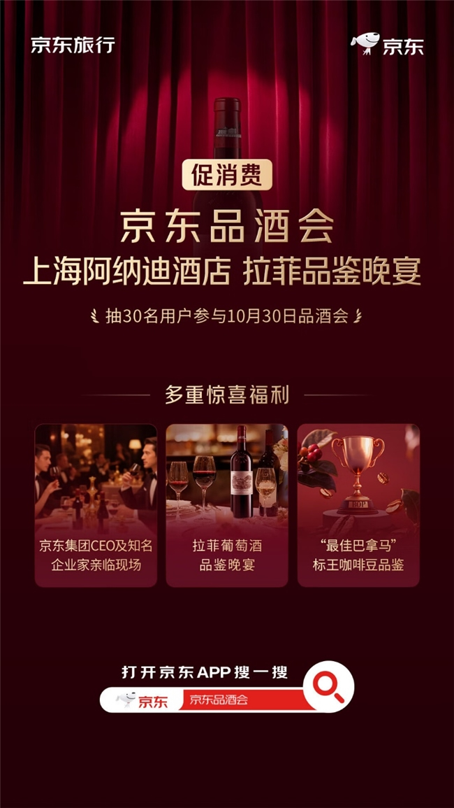 繼9月16日首場京東品酒會爆火,官宣24小時百萬人涌入活動會場后,時值京東11.11期間,第二場京東品酒會即將來襲。10月30日,京東旅行將在上海阿納迪酒店舉辦第二場品酒會,京東集團SEC副主席、京東集團CEO許冉及其他知名企業家現身現場,和用戶一起“品名酒,交朋友”。