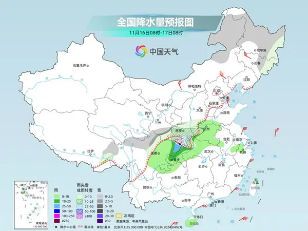 今天(11月15日)至18日,今年下半年首場寒潮將影響我國,明天起中東部將進入主要降溫時段,17日至19日南北方將先后迎來本次降溫過程的氣溫低點,最低氣溫0℃線將抵達蘇皖南部、湖北北部一帶,氣溫將大范圍創今年下半年來新低。另外,今明天,內蒙古東部、黑龍江、吉林東部降雪將增多,青藏高原東部以及西南地區一帶也有較大范圍的雨雪天氣。
