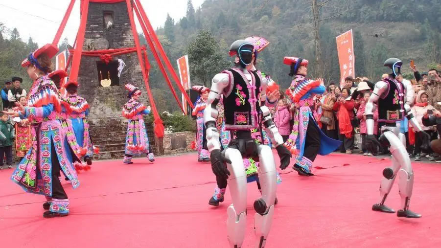 活動期間,南寶山鎮木梯羌寨處處洋溢著歡慶氛圍,文化傳承與民生溫度交織共生。從莊重的寨門迎新、祭祀祈福儀式,到釋比老人手持羊皮鼓吟唱經文的千年信仰傳承;從《摘花椒》《永遠是一家》等傳統羌族歌舞展演,到身著迷你羌服的機器人跳沙朗舞的“科技+民俗”創意碰撞……每一個環節都承載著羌族文化的根脈,也傳遞著南寶山鎮發展文旅產業的具體實踐。