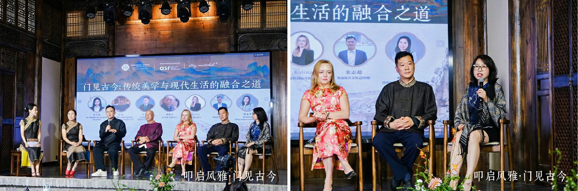 活動特設的分享環節更具深度,由海口鴻園酒店公寓·雅詩閣臻選駐店總經理張雪茜女士主持,邀請古建筑守護人、金石收藏大家張勝吾老先生,海南鴻寶投資控股總經理李真先生,雅詩閣中國深圳東莞福建及海南區域總經理郭龍華女士,海南黎錦傳承人吳虹女士以及海口鴻園酒店公寓長住客人Kalina共同參與。眾人圍繞“門見古今:傳統美學與現代生活的融合之道”展開對話,以海口鴻園酒店公寓為實踐樣本,從品牌戰略選擇、文化遺產守護、空間設計創新及切身體驗等維度,探討當代旅居空間如何承載歷史傳承與商業價值的雙重使命。